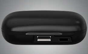 Take the earbuds out of the charging case. They will power on automatically after 6 seconds. (Default mode is Hearing Aid Mode.) Double-tap the volume button to switch to Bluetooth Mode.